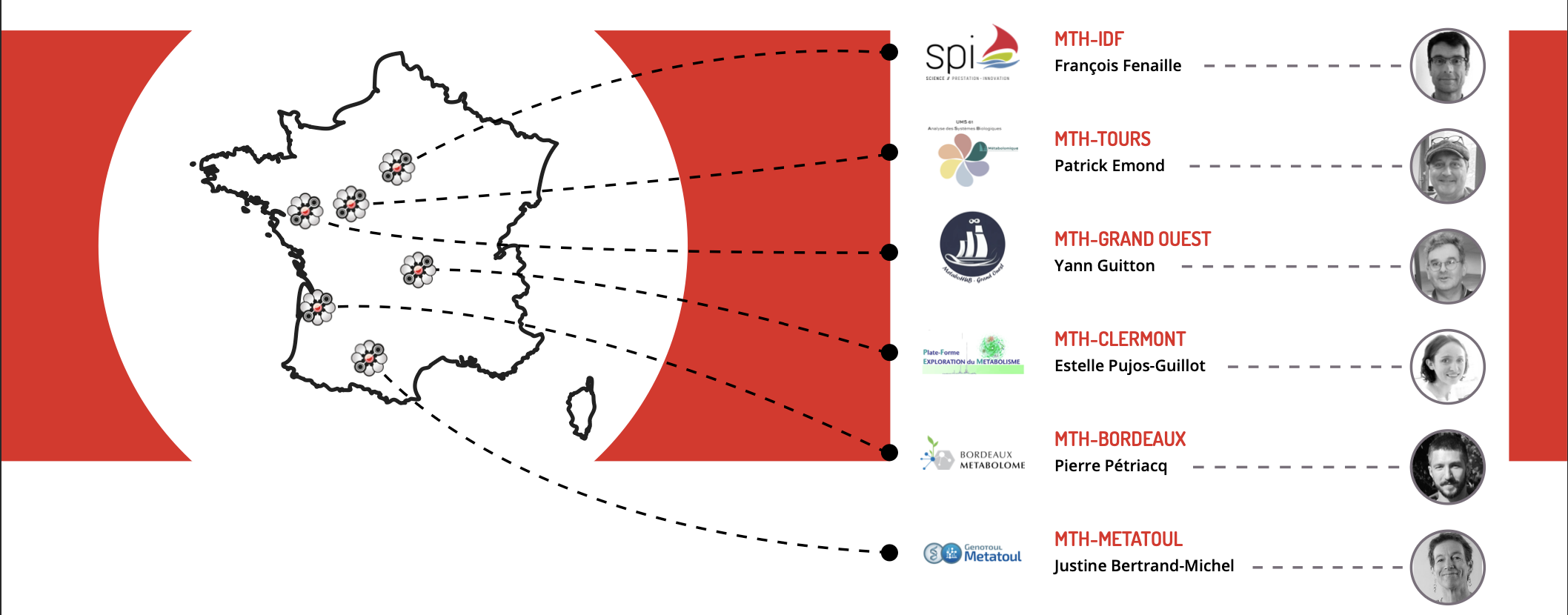 L'infrastructure MetaboHUB rassemble les outils analytiques complémentaires (équipements, techniques analytiques, logiciels), les compétences de 6 noeuds (MTH-MetaToul, MTH-IDF, MTH-GO [MELISA, P2M2, CEISAM-MIMM], MTH-Bordeaux, MTH-Clermont, et MTH-Tours) intégrant 16 sites.